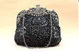 Dimension: 7.5" L x 7" H x 4" W.21" shoulder drop.Perfect for your next formal party or proms making a bold and dramatic statement.Antique rose engraved clip closure.Removable metal shoulder chain.Made of satin with beautiful beaded design.