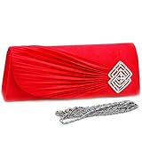 Pleated flap over front clutch evening purse bag red - Made of satin material