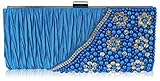 Womens Teal Blue Satin Beaded Diamantes Clutch Evening Bag - KCMODE